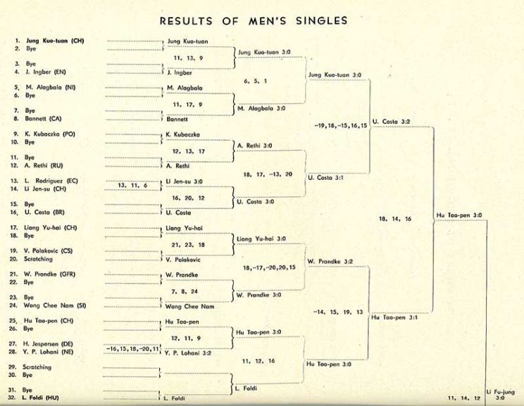 • 1961年の北京大会、ビリーバさん対容国団のビデオが有ります。試合のごく一部ですが、当時のプレーと信じられないハプニング(ビリーバさんの優勝)が見られ、現在のビリーバさんの声が聞けます。(日本語字幕有り)